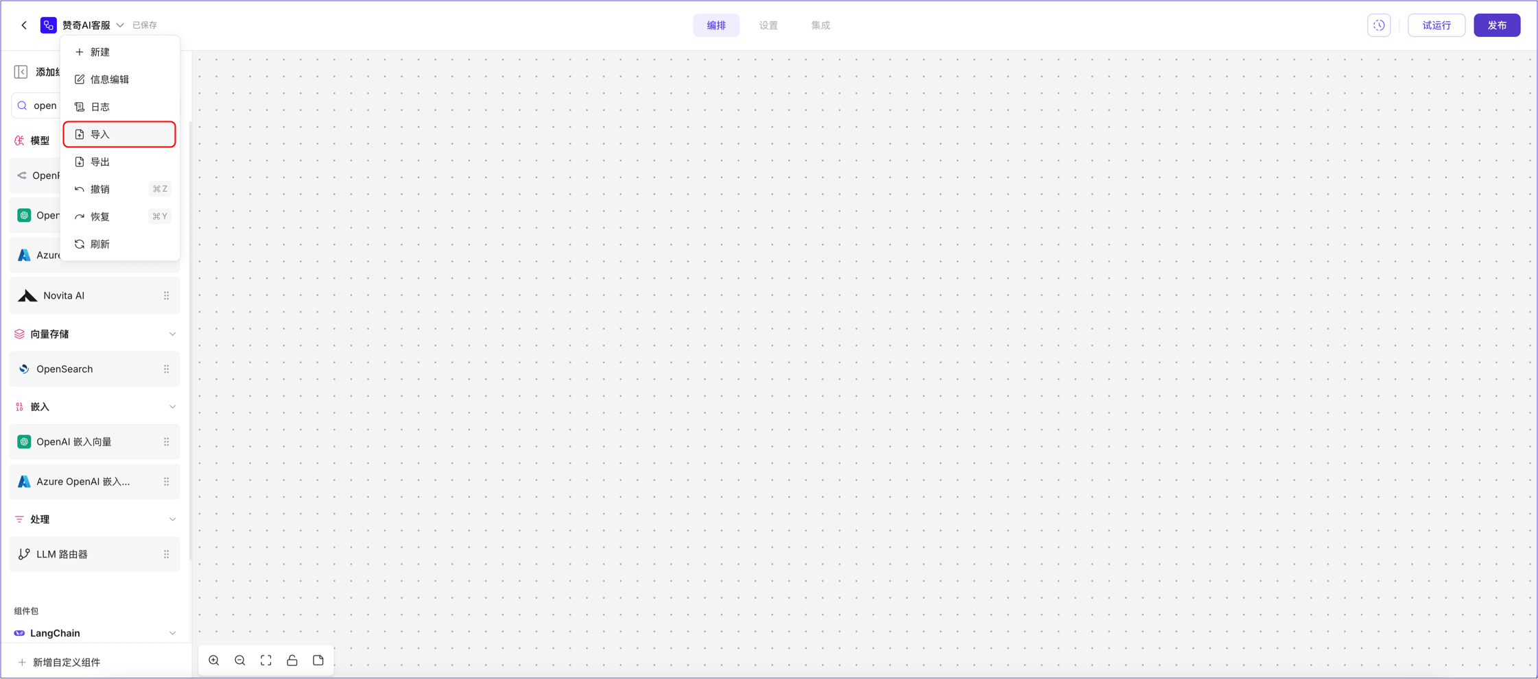 如果您已经有 AIKnow JSON 文件,可以通过点击项目名称并选择导入将其导入到 AIKnow 中。